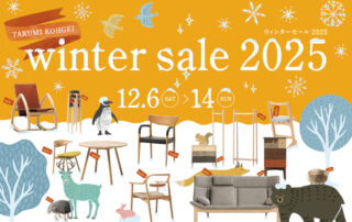 弊社の公式オンラインショップ「TAKUMI ONLINE SHOP」で期間限定のキャンペーンを実施します。 キャンペーン期間:2023年12月1日(金) 0:00~2024年1月10日(水) 12:00 上記期間中にTAKUMI ONLINE SHOPで匠工芸の家具をご購入いただいたお客様には、下記の特典をご用意しております。   [...]
