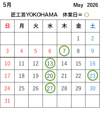 横浜店 2026年5月の営業日・休業日は上記のとおりです。